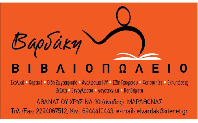Ευχαριστούμε θερμά το Βιβλιοπωλείο Βαρδάκη στο Μαραθώνα για την συμμετοχή του στη δράση της εφημερίδας ΖΩ για την συγκέντρωση σχολικών ειδών! [link]