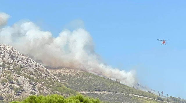 Οι δυνάμεις έχουν ενισχυθεί και αυτή τη στιγμή επιχειρούν 41 πυροσβέστες με 12 οχήματα, 3 ομάδες πεζοπόρων τμημάτων, το μηχανοκίνητο της Πυροσβεστικής, 2 αεροσκάφη και 2 ελικόπτερα, ενώ συνδράμουν και υδροφόρες ΟΤΑ.