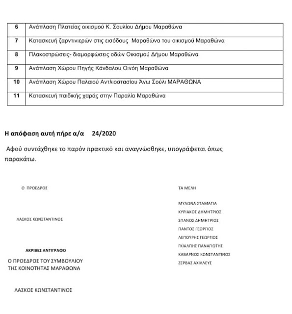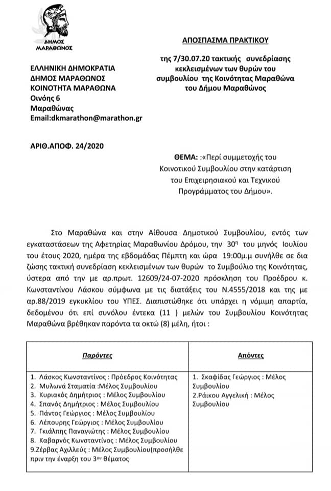 Κοινότητα Μαραθώνα: Με μεθοδική δουλειά και ομόφωνα οι προτάσεις της κοινότητας Μαραθώνα(έτους 2021)