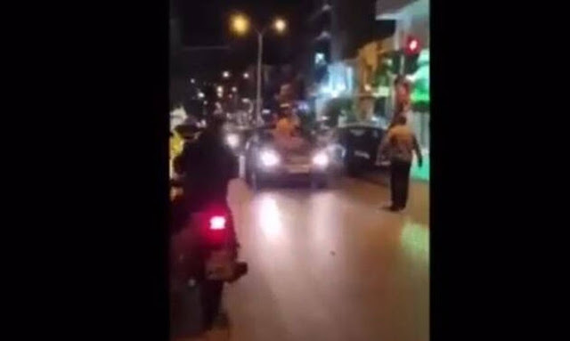 Ο άνδρας στο τέλος ανέβηκε πάνω στο παρμπρίζ αυτοκινήτου, με τον οδηγό του οχήματος και άλλους άνδρες να προσπαθούν να τον απωθήσουν.