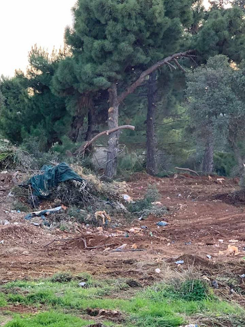 Έκοψαν βάτα, μικρά δέντρα κλπ και έστρωσαν τόνους μπάζων μέσα στο ρέμα .