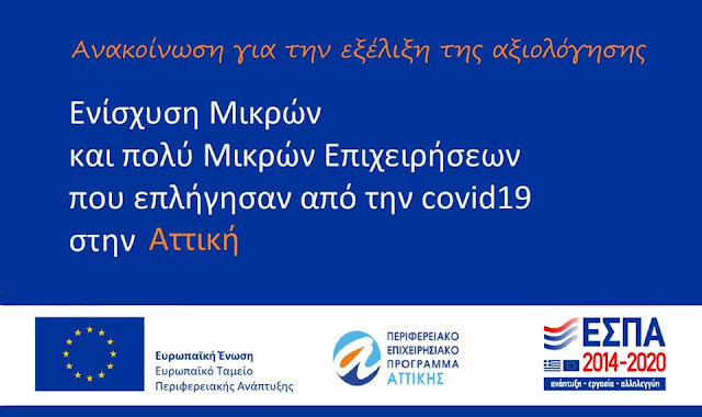 Από τον προσεχή Απρίλιο αναμένεται να ξεκινήσει τμηματικά, η καταβολή των χρηματικών ενισχύσεων προς τις επιχειρήσεις της Αττικής, στο πλαίσιο του Προγράμματος «Ενίσχυση Μικρών και Πολύ Μικρών Επιχειρήσεων που επλήγησαν από την πανδημία COVID-19 στην Αττική», που υλοποιείται από την Περιφέρεια Αττικής, με χρηματοδότηση από το ΠΕΠ Αττικής (ΕΣΠΑ) 2014-2020.